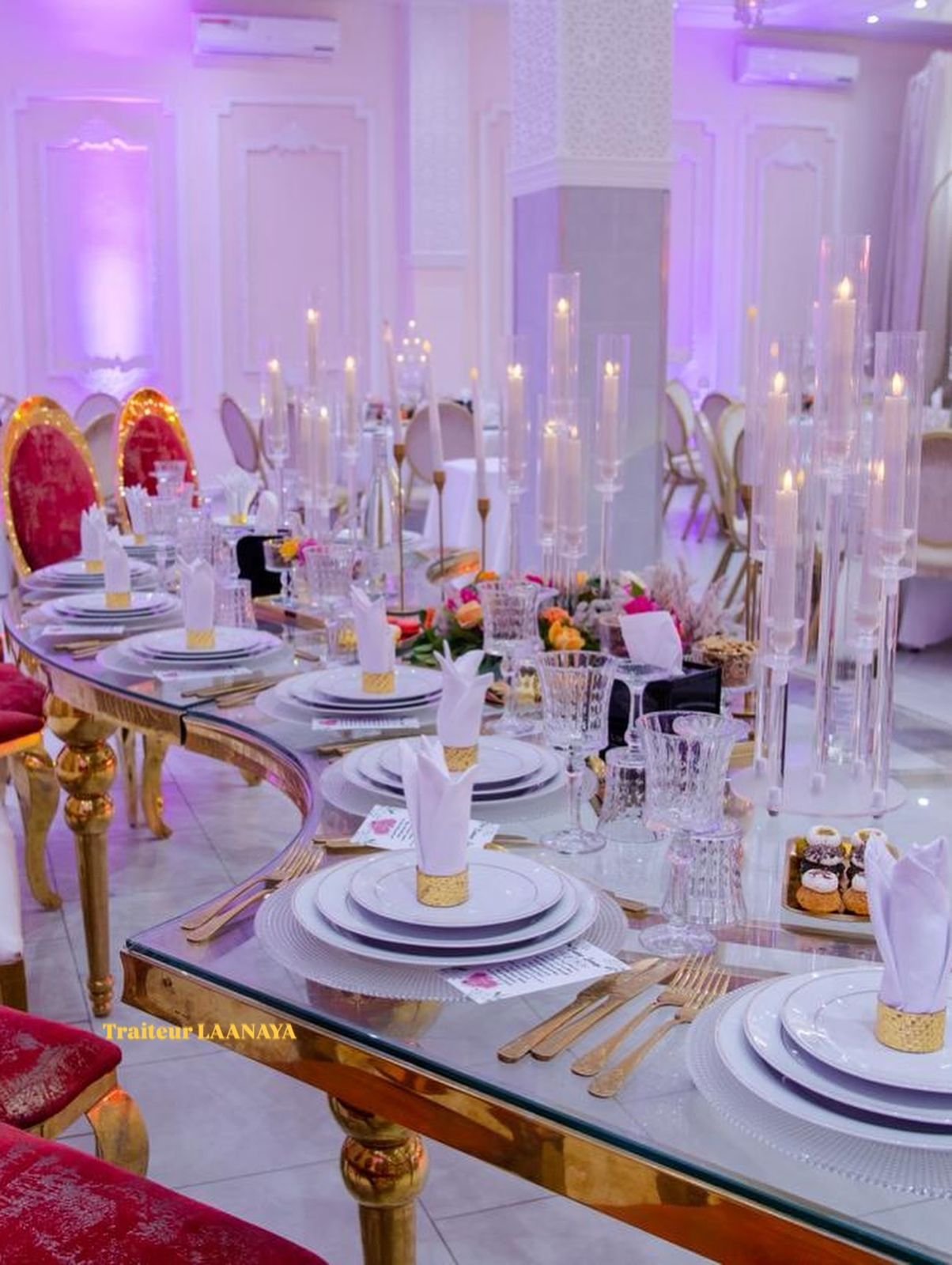 Chez Traiteur Laanaya, chaque événement devient une expérience unique, empreinte d’élégance et de raffinement. Basés à Marrakech, nous avons à cœur de sublimer vos mariages, galas, célébrations privées ou événements professionnels, en mêlant tradition et modernité.